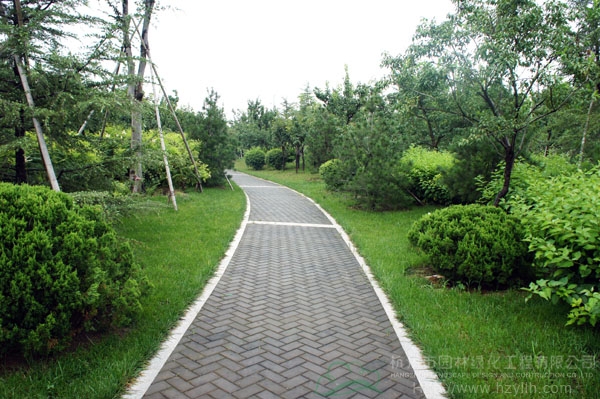 山東壽光市東環(huán)路東側(cè)綠化改造工程(圣城街-北環(huán)路)面積9萬平方米,施工范圍為機(jī)動車道與非機(jī)動車道之間2.5米的隔離綠化帶和30多米寬的路側(cè)綠化帶,施工內(nèi)容包括土方地形整理、綠化種植、園路鋪裝、景石擺放、景觀小品營建等。2009年9月開工,2010年7月竣工。經(jīng)過2年的精心養(yǎng)護(hù),如今,這里樹木蔥郁,花草繁茂,一路走來,隨著多種風(fēng)格的園路在腳下延伸,風(fēng)景也在眼前不斷變化。