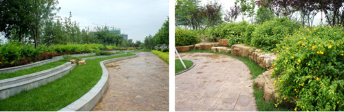 山東壽光市東環(huán)路東側(cè)綠化改造工程(圣城街-北環(huán)路)面積9萬平方米,施工范圍為機(jī)動車道與非機(jī)動車道之間2.5米的隔離綠化帶和30多米寬的路側(cè)綠化帶,施工內(nèi)容包括土方地形整理、綠化種植、園路鋪裝、景石擺放、景觀小品營建等。2009年9月開工,2010年7月竣工。經(jīng)過2年的精心養(yǎng)護(hù),如今,這里樹木蔥郁,花草繁茂,一路走來,隨著多種風(fēng)格的園路在腳下延伸,風(fēng)景也在眼前不斷變化。近日,通過對項目負(fù)責(zé)人高仁良的采訪,我們對該工程有了更多了解。