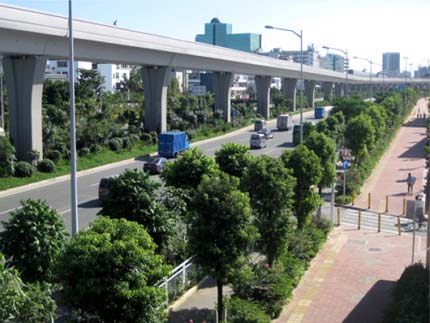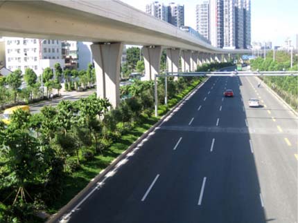 如今,開車行進(jìn)在這條道路上,干凈整潔的路面、開闊通透的視野、清新自然的景觀,給人帶來閑適、愜意的感覺?!耙匀藶楸?,尊重自然”的綠化理念,體現(xiàn)在景觀中的每個細(xì)節(jié);自然環(huán)境與城市環(huán)境的密切結(jié)合,使高架橋的道路通行功能與橋下中央綠化帶的生態(tài)功能有機融合。整條道路,不僅體顯出深圳這個濱海大都市獨有的景觀特色,更彰顯出這個城市的生機活力與熱情奔放。