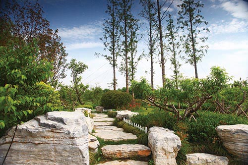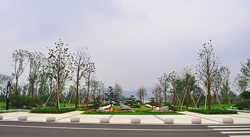 工程在施工過(guò)程中,對(duì)原有地形和保留下來(lái)的大量古樹(shù)、名貴樹(shù)木進(jìn)行了充分運(yùn)用。本著以人為本、生態(tài)優(yōu)先的原則,因地制宜、因材施用,建成了許多不同風(fēng)格的景點(diǎn),營(yíng)造出全新的景觀效果。