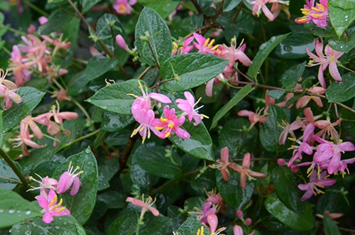 我是忍冬科忍冬屬植物,落葉灌木,新葉嫩綠,老葉墨綠色泛藍(lán)色,花粉紅色,花期4-5月,漿果亮紅色,果期9-10月。因其花色美麗,著花濃密,耐修剪,易于養(yǎng)護(hù),可在混合花境中作為中后層次的植物材料使用。 看我這么秀美,還不帶我走!