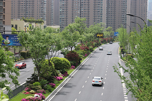 項目南起新業(yè)路,北至?xí)一ㄢ致?,全長約1750米,是集綠化、美化、文化等為一體的景觀大道,四季特色分明。春有日本早櫻、垂絲海棠等花滿枝頭;秋有銀杏、紅楓色彩明艷,更有桂花一路飄香;夏、冬時節(jié)風(fēng)景又有不同。豐富的植物配置、色彩鮮艷的草花、文化氣息濃郁的小品……使得這條道路開闊大氣,充滿生機(jī)。