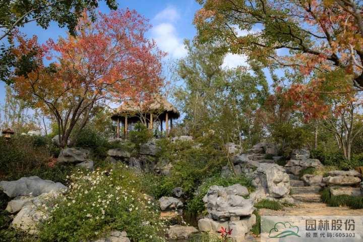 沿著山石小道拾級(jí)而上,便到了“問茶”展區(qū),這里有一處茅草雙亭,是整個(gè)杭州園的制高點(diǎn),可一覽全園風(fēng)光,也可以遠(yuǎn)眺園外風(fēng)景。“綠色、智能、節(jié)儉、文明”是杭州第19屆亞運(yùn)會(huì)的辦會(huì)理念,此次也同樣運(yùn)用到了杭州園中,在建園初期,建設(shè)人員開挖出了不少大大小小的山石,并巧妙地就地取材,最小化干預(yù),修建成了山石小路,這些石塊鋪成的園路與太湖石營造的假山溪澗融合在一起,渾然天成。