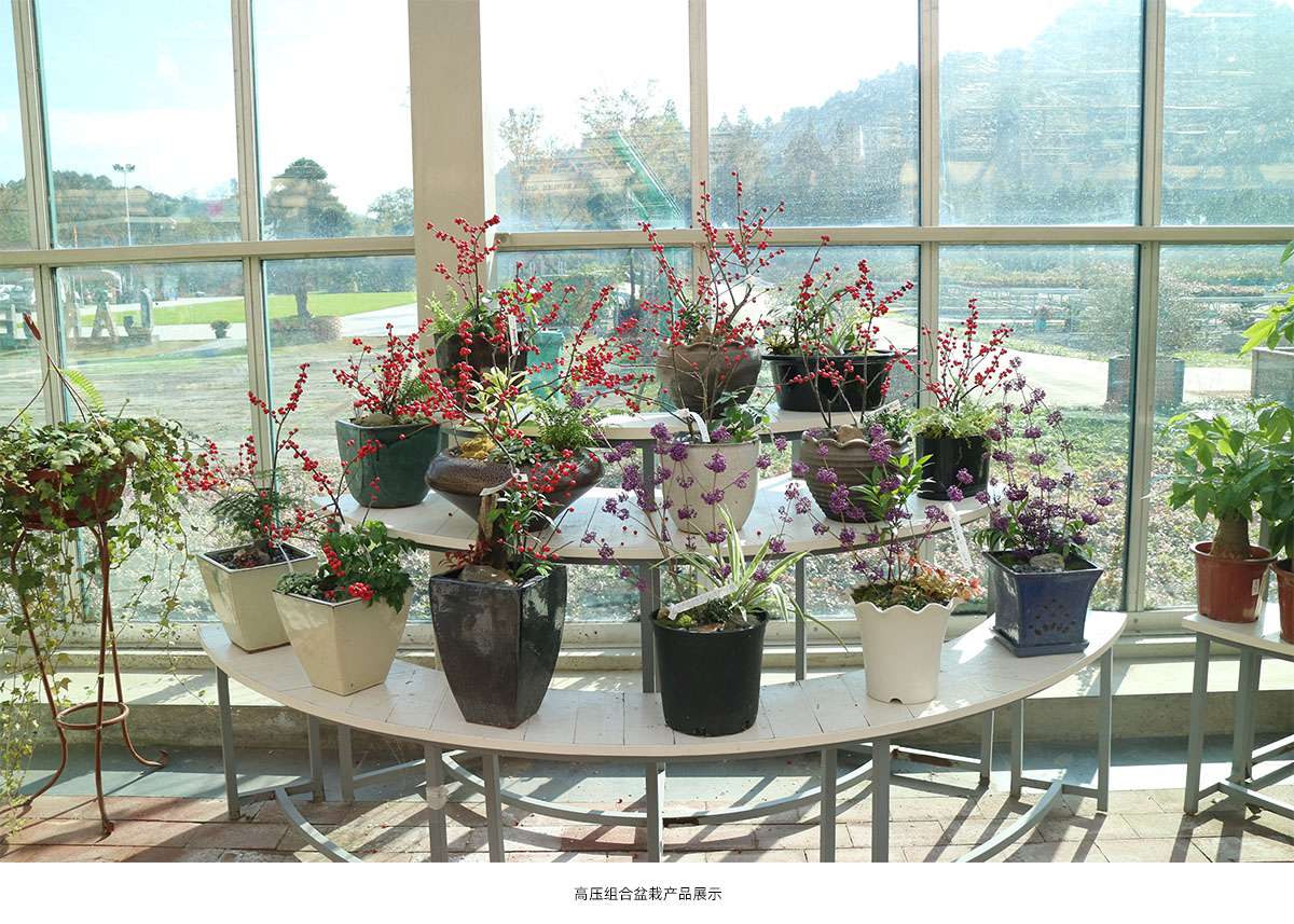 以容器育苗技術(shù)為基礎(chǔ),結(jié)合株型控制技術(shù)、高空壓條技術(shù)和花期調(diào)控技術(shù),對上百種園林植物進(jìn)行深度開發(fā),實現(xiàn)中大型植物小型化和多季開花的目的,有效提高了植物產(chǎn)品的附加值。 (1)容器育苗