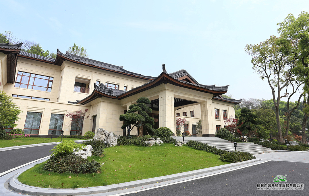 西湖山莊隨山勢(shì)而建,與西湖山水和諧相融,四周綠意盎然,風(fēng)景如畫。項(xiàng)目充分利用場(chǎng)地原生態(tài)的景觀特點(diǎn),依勢(shì)成景,因樹(shù)設(shè)景,文化為景,營(yíng)造出建筑隱、樹(shù)林茂、花卉雅、四時(shí)賞的景觀特色。筑以山勝,境因樹(shù)幽,曠奧有度,大氣大方,成就杭州秀美新景觀。