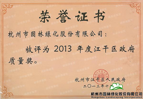 江干區(qū)政府質(zhì)量獎(jiǎng)