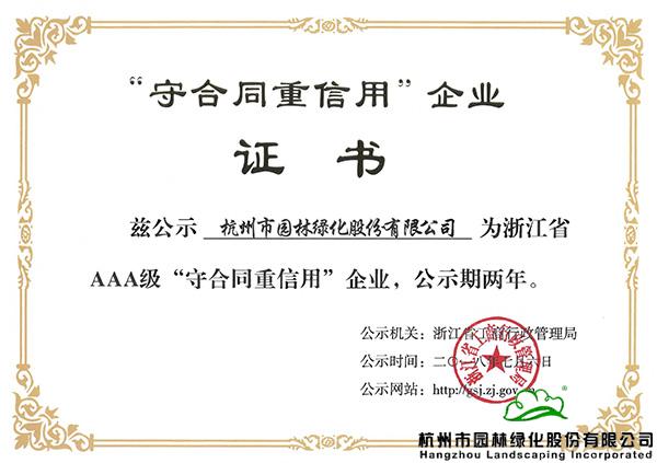 浙江省AAA級(jí)“守合同重信用”企業(yè)