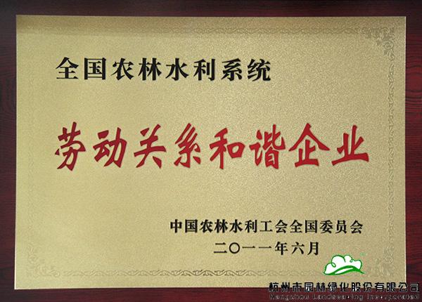 全國農(nóng)林水利系統(tǒng) 勞動(dòng)關(guān)系和諧企業(yè)