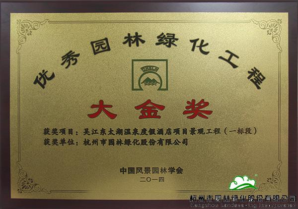 “中國風(fēng)景園林學(xué)會(huì)‘優(yōu)秀園林綠化工程’大金獎(jiǎng)”